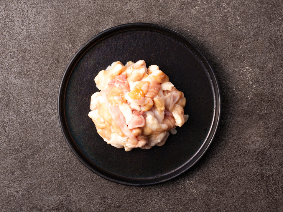 プリプリした弾力のある食感、染み出る旨味、甘い脂が特徴です。やわらかく食べやすい内臓部位なので、焼肉用やもつ鍋の材料として人気があります。